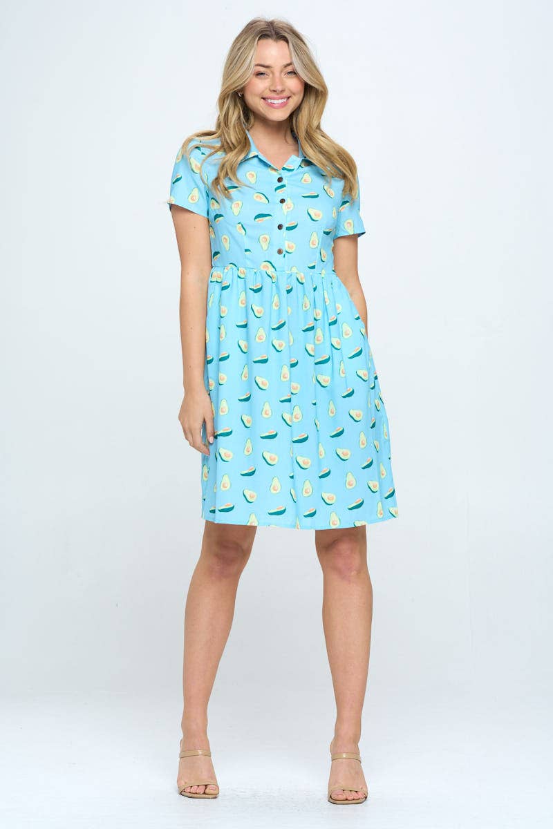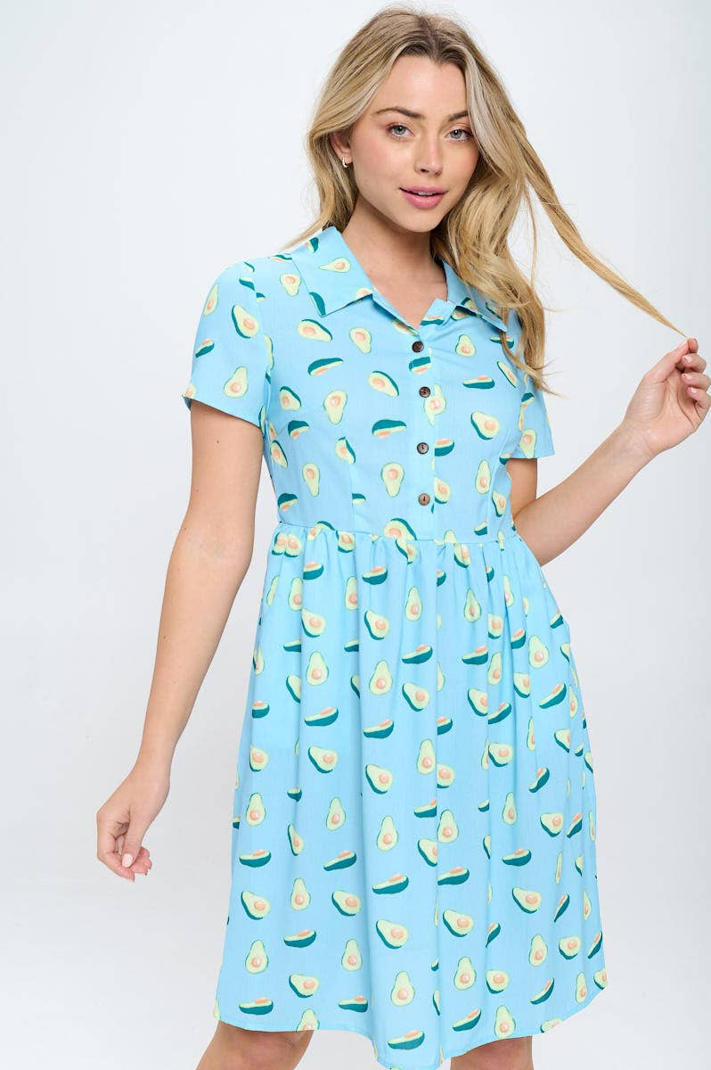 Perfect for any summer outing, this charming dress with avocado print features pockets and a flattering fit for all-day comfort.