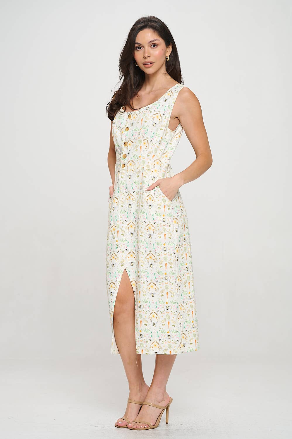 Step into nature’s charm with the Bee Garden Print Midi Dress — a delightful blend of whimsy and elegance. This enchanting piece showcases a lively print of buzzing bees, blooming florals, and lush greenery, evoking the magic of a sun-drenched garden in full bloom. Designed with a flattering midi length and crafted from soft, breathable fabric, it offers effortless comfort and style for any occasion. Whether you're wandering through the park or enjoying a garden brunch, pair it with your favorite sandals or sneakers for a look that's as joyful as it is stylish. Let this dress add a touch of sunshine and natural beauty to your wardrobe!