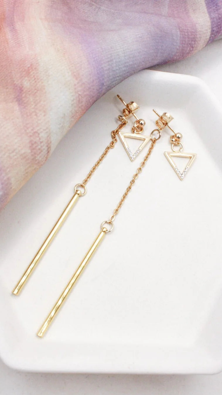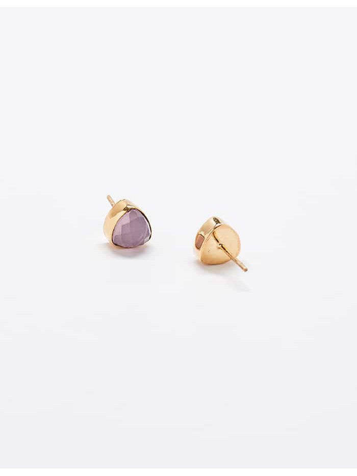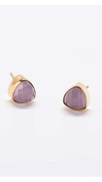 Add Rose Quartz Gold Triangle Gemstone Studs to the cart