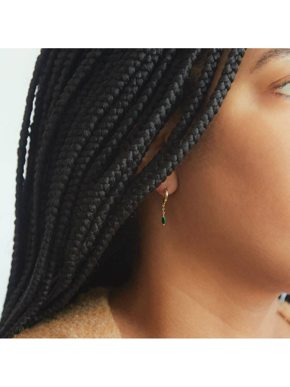 Add Green CZ Short Chain Huggie Earrings to the cart