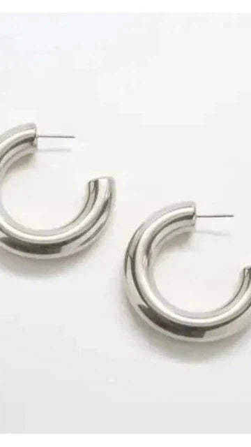 Add Silver Medium Chunky Hoop Earrings to the cart