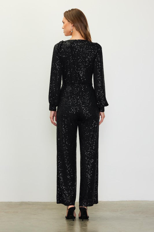 Sequin Wrap Tie Jumpsuit Black