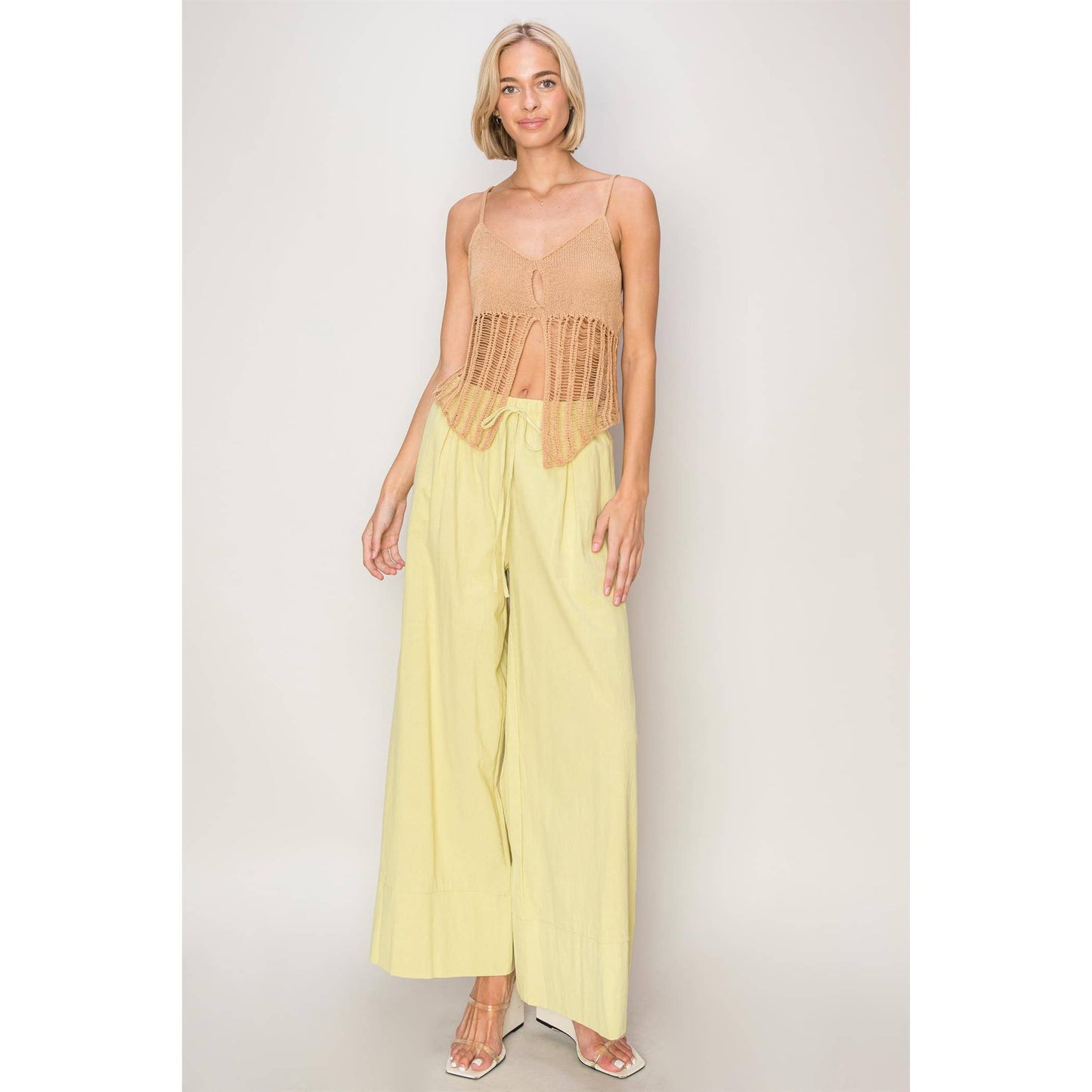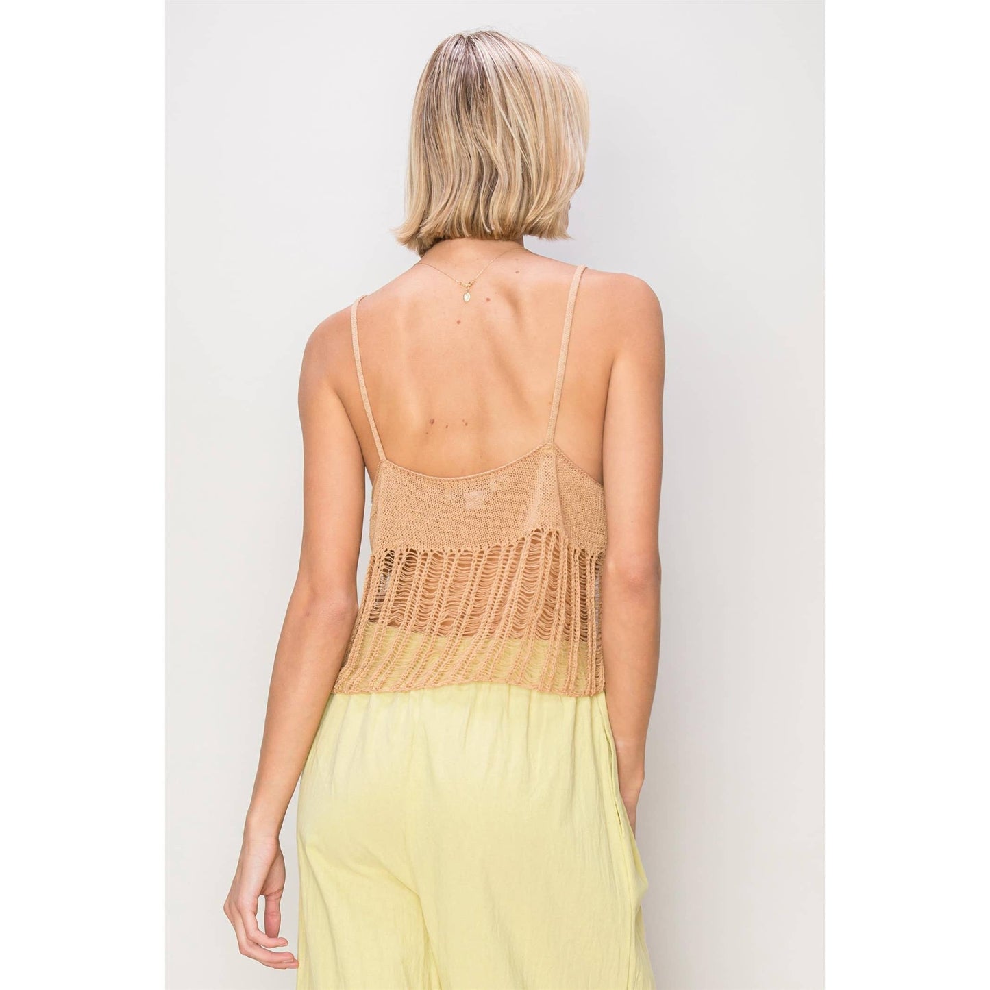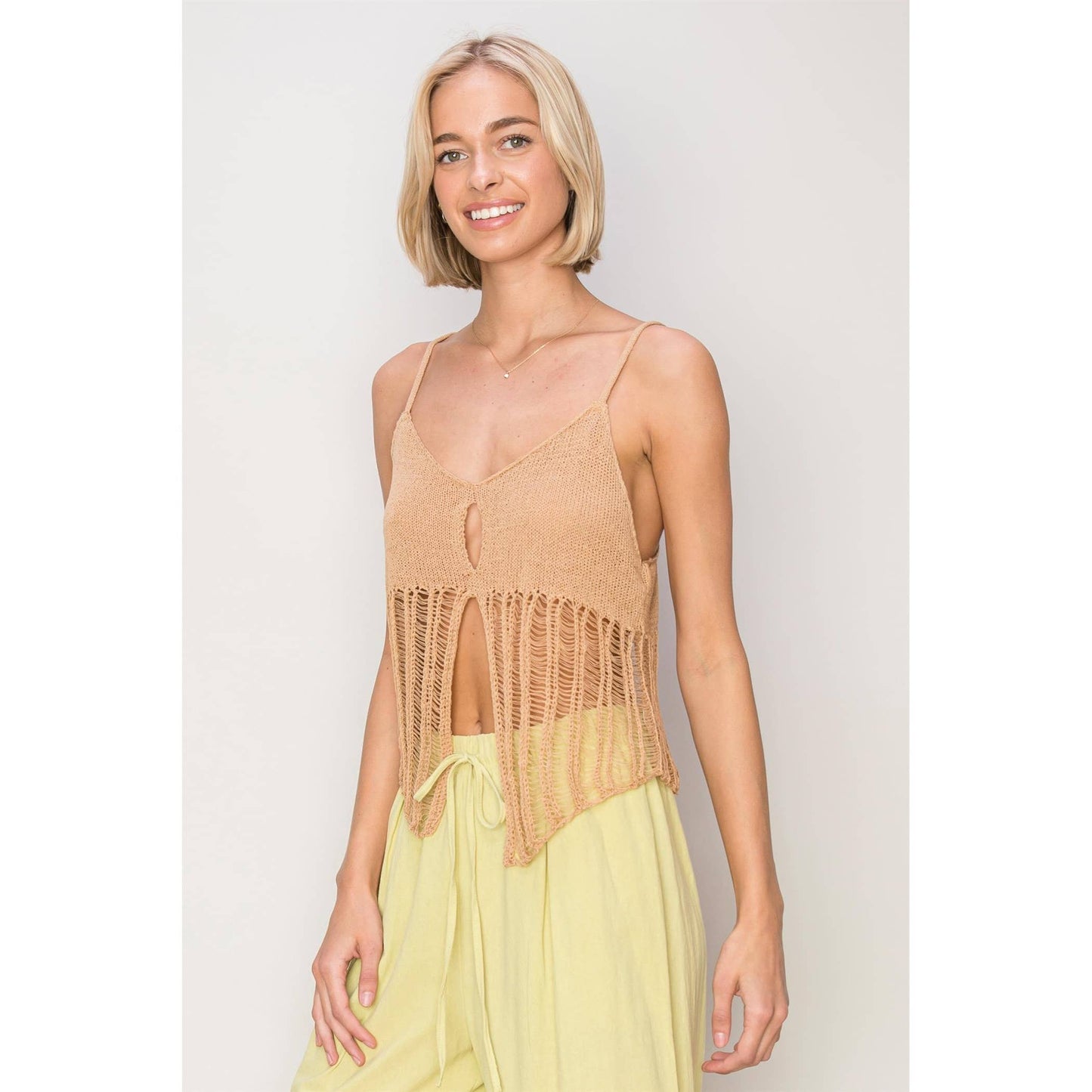 Channel effortless boho-chic vibes with this charming top, featuring a scoop neckline, adjustable cami straps, and a flirty cutout detail at the bust. The intricate crochet design with open stitching adds a breezy, handcrafted feel, while the front split brings a playful touch.