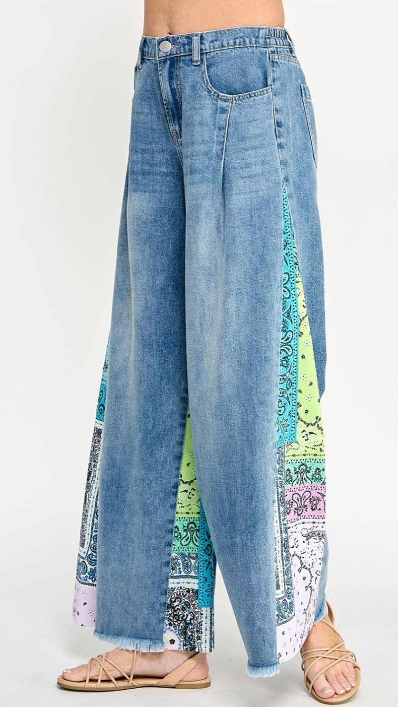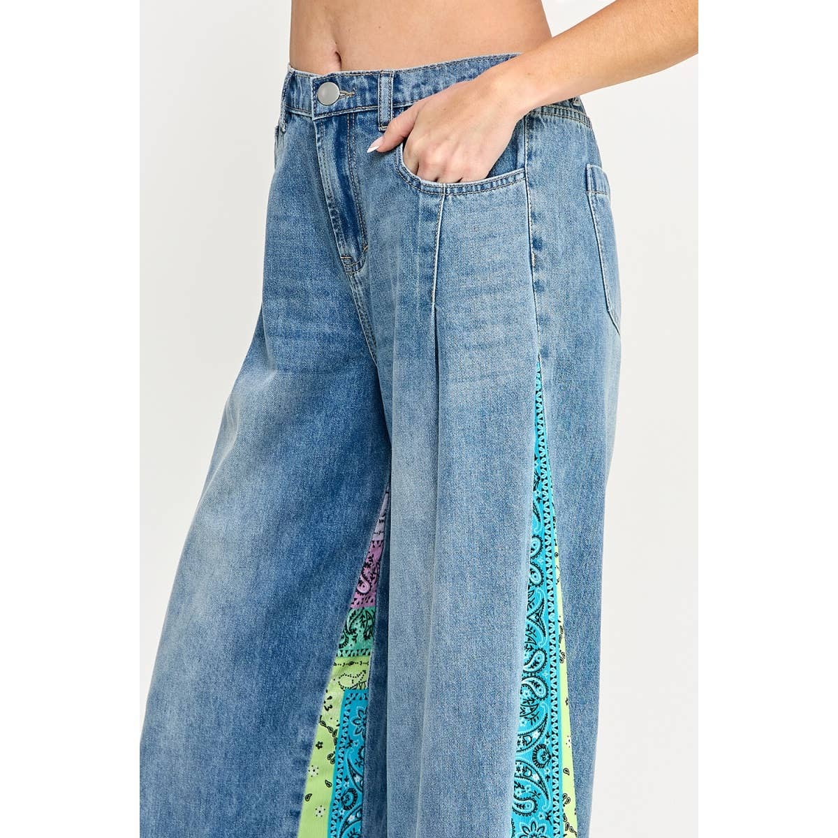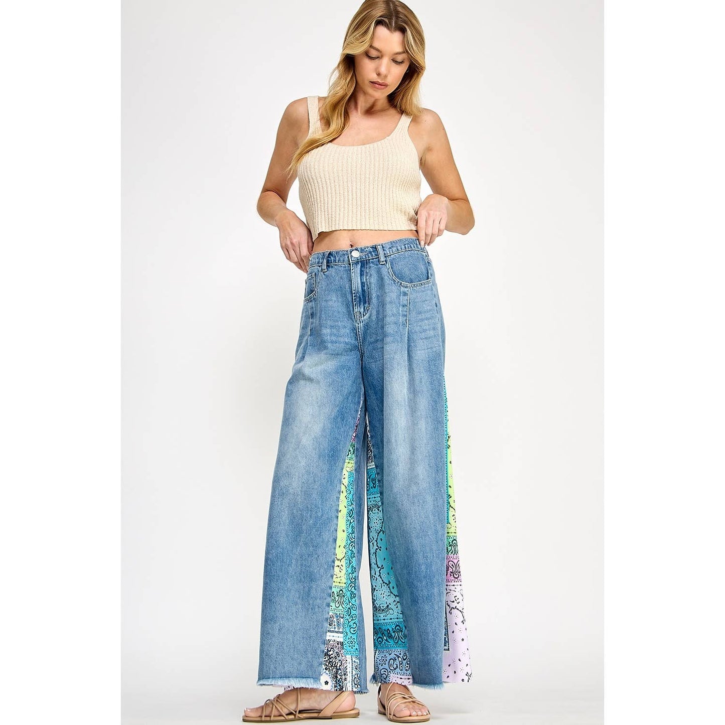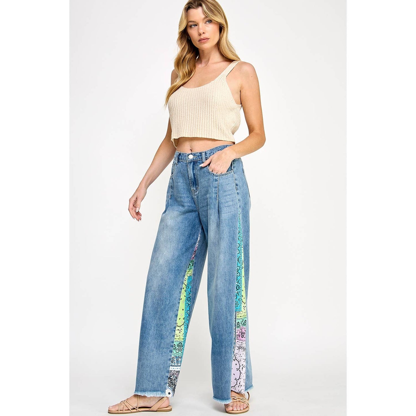 Elevate your casual wardrobe with these Perfectly Paisley Pants. Crafted from a light wash denim, these high-rise pants feature a unique ridge design that adds a touch of sophistication. The 5-pocket styling and button-and-zip fly ensure practicality and comfort, while the side paisley print contrast brings a playful and eye-catching element to your outfit.