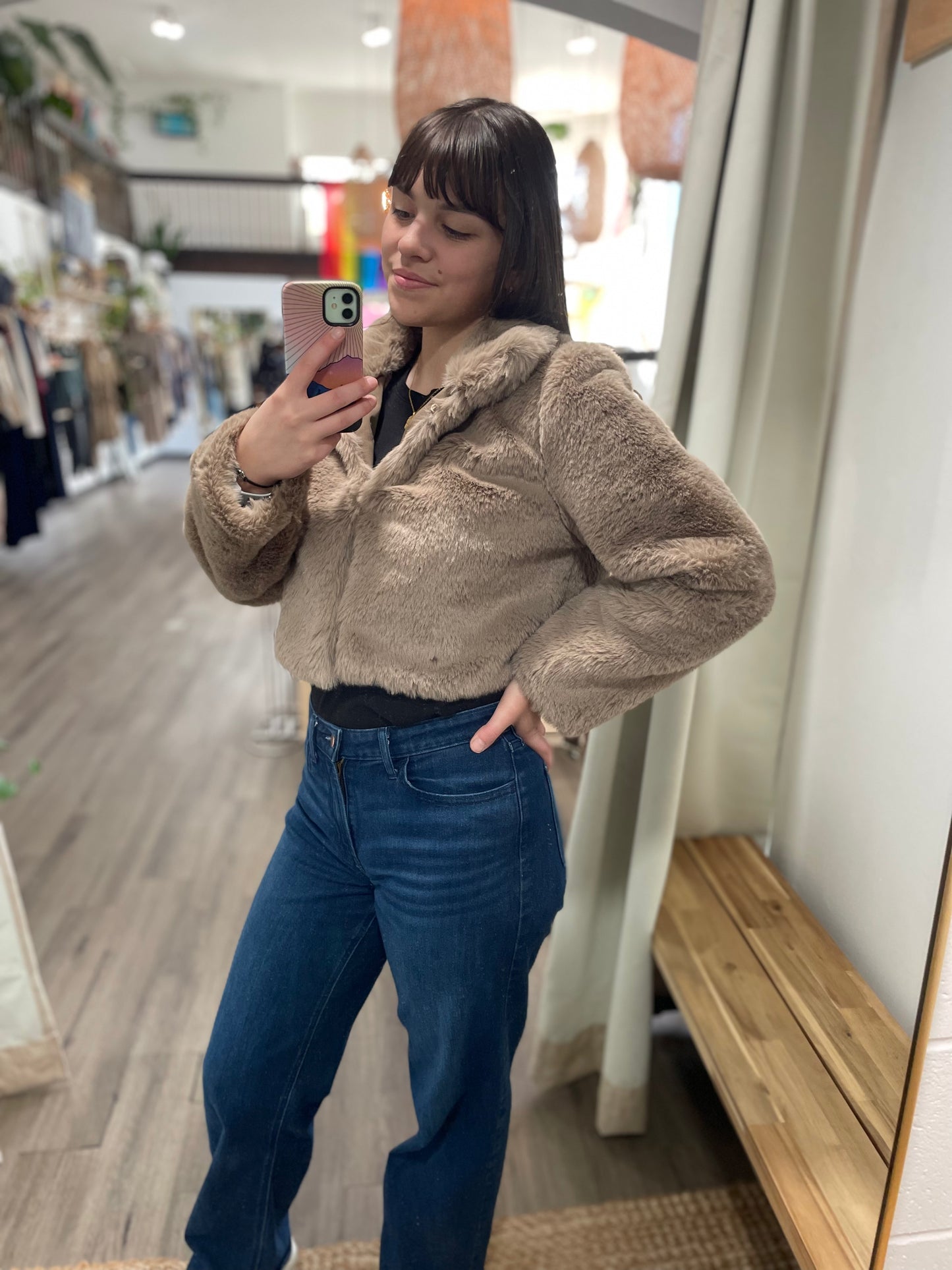 This cropped winter hugger jacket is the perfect complement to any dress. Ward off the chill in style with this soft, chic faux fur (read: totally huggable) coat.
