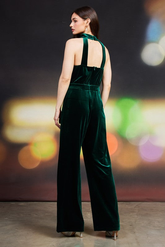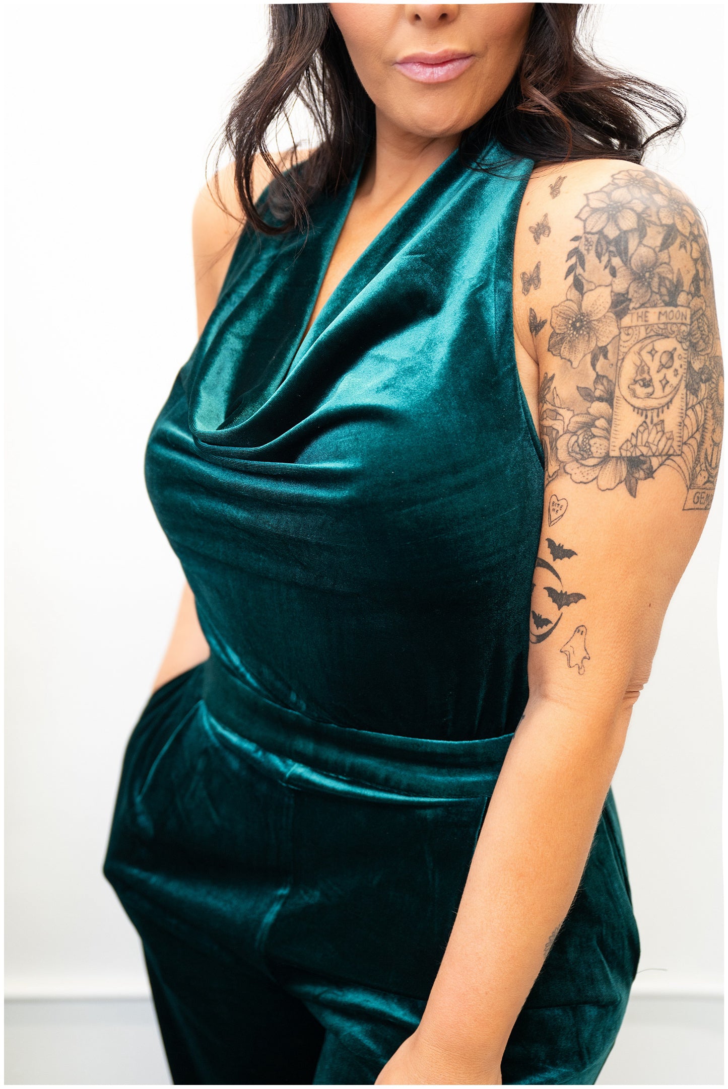 Velvet Cowl Neck Jumpsuit Hunter Green